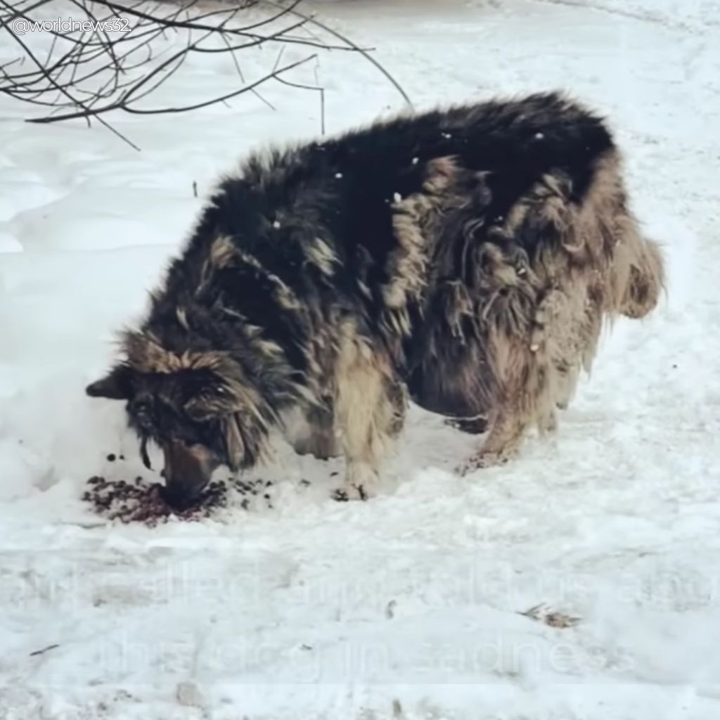 Her belly hung so low that the massive tumor nearly touched the snow beneath her. The girl whispered that the owner had called her “useless” and demanded someone remove her from the property.