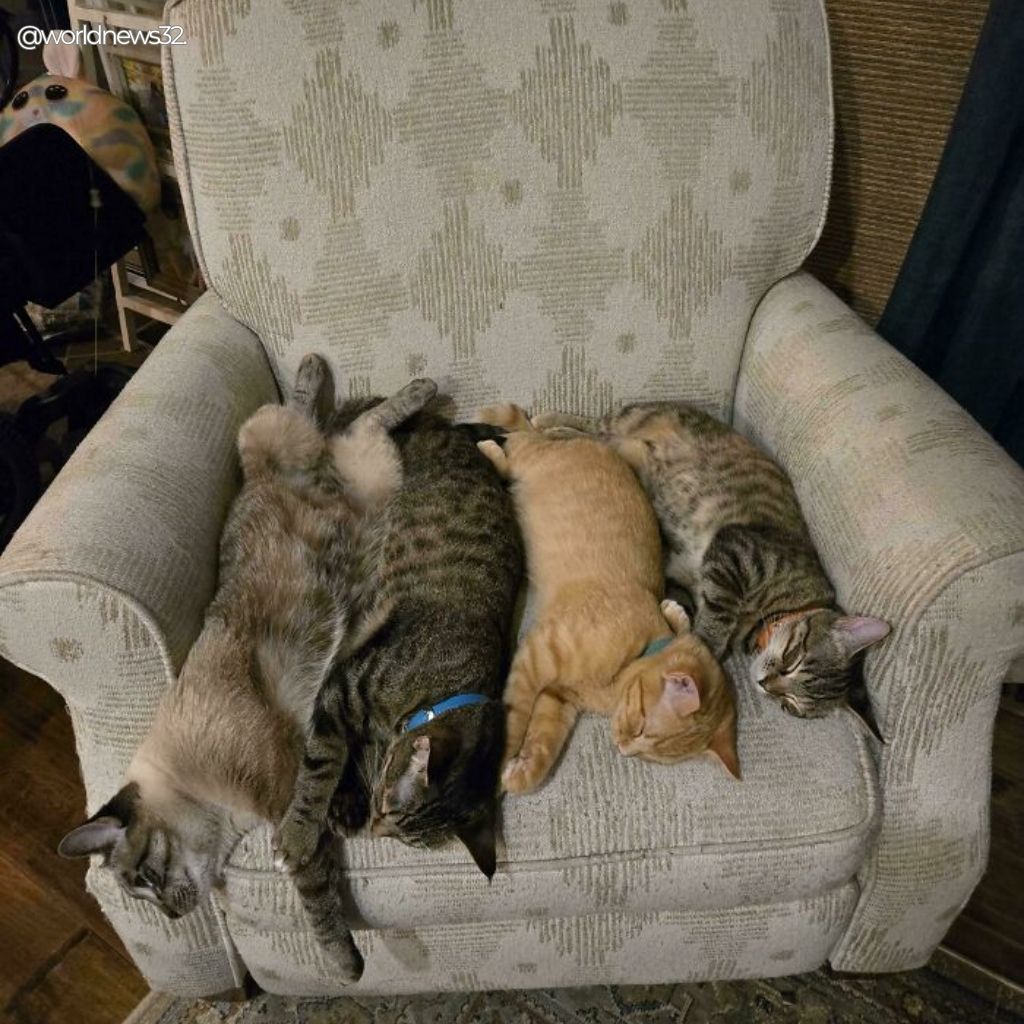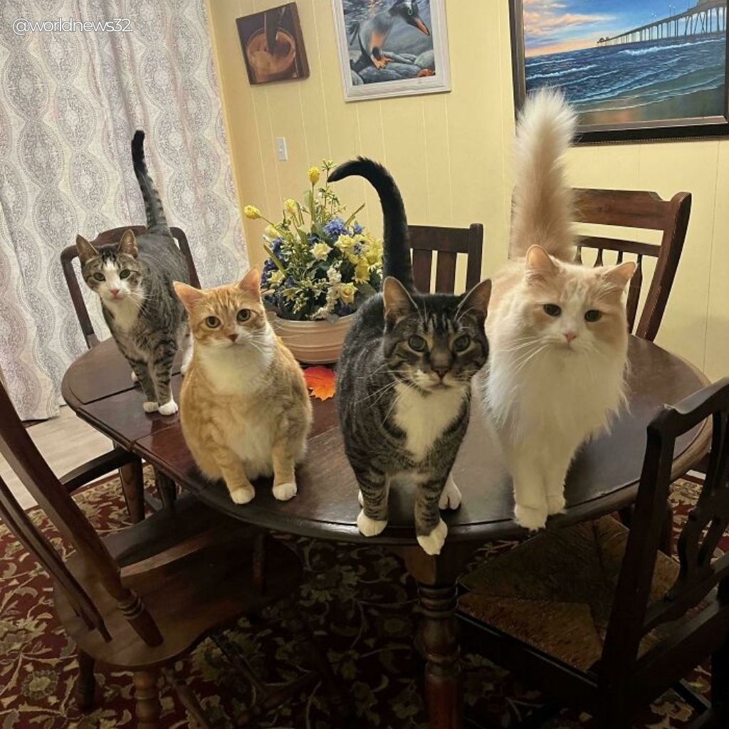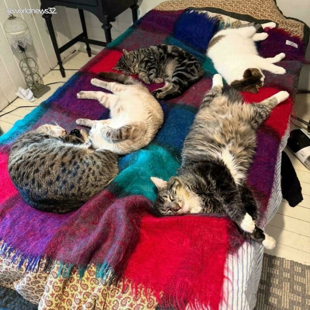 This collection features amusing and slightly concerning photos of cats caught mid-assembly. Whether they’re planning household takeovers or simply sharing warmth, their synchronized behavior is impossible to ignore.