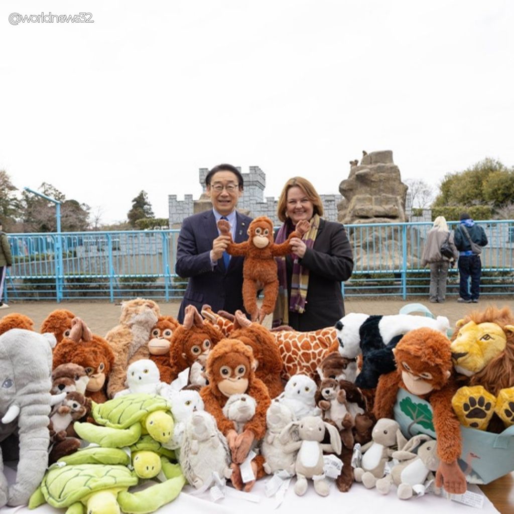 On February 17, Petra Fare, CEO and President of IKEA Japan, visited the zoo to meet Punch. During the visit, IKEA Japan donated multiple plush toys, including additional orangutans and other soft companions.