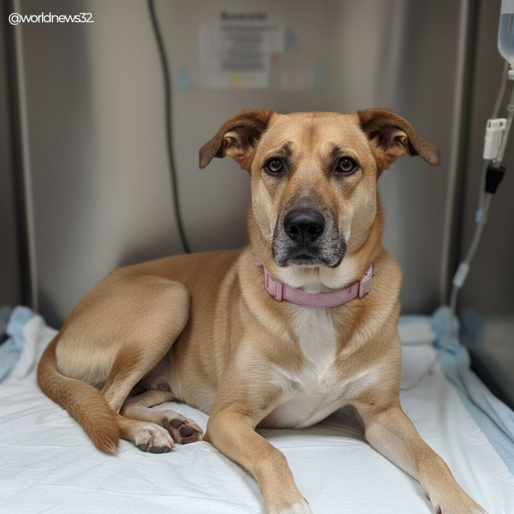 When rescuers first saw Roxi running down the main street, she looked like a skeleton wrapped in fur. She was desperately thin, her ribs and backbone sharply visible, and yet she still wagged her tail as if greeting the world that had failed her.
